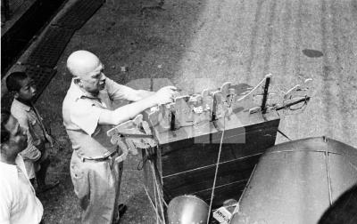 0052獻金台上之主席及宣導、黃琪翔將軍的夫人郭秀儀(中)。
