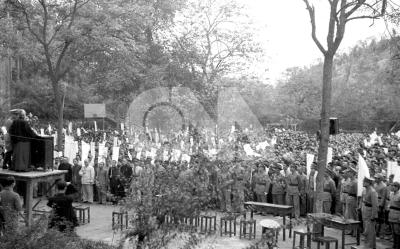 重慶市保甲長聽訓─內政部部長周鍾岳訓話