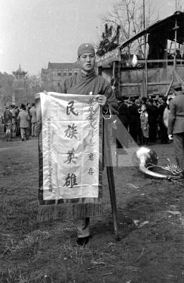 0211-0212一位手中拿著民族英雄錦旗的傷殘