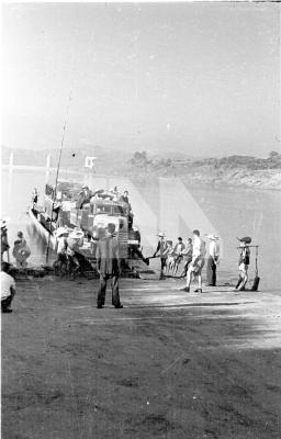 0001眾人合力將船舶上的旅行團遊覽車推向到岸邊