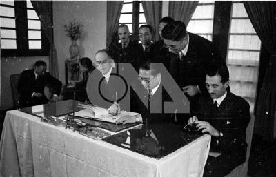 0019中、英平等新約簽字儀式,由外交部宋子文(中)