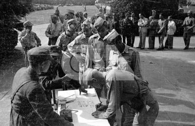 0061何應欽上將與應邀觀禮的各國武官會後合影