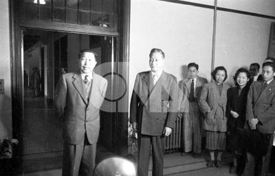 中宣部長彭學沛介紹行政院新聞局長董顯光與京滬記者
