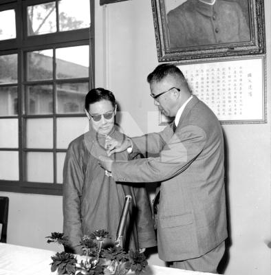 張部長以金質獎章一枚親為任卓宣教授別上。