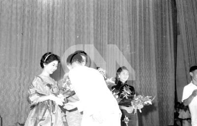 0007—0010圖為名章伶遏雲(右2)演出「春香鬧學」後接受獻花。左1為大鵬國劇團的徐露。