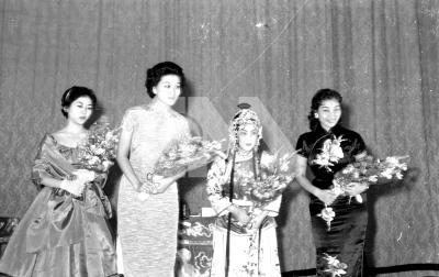 0007—0010圖為名章伶遏雲(右2)演出「春香鬧學」後接受獻花。左1為大鵬國劇團的徐露。
