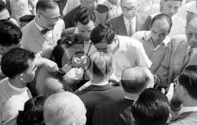 握手寒暄情形,其受歡迎的盛況,為繼胡適博士之後,
