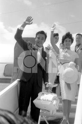 午2時許抵達臺北松山機場,同行有男影星趙雷、林黛