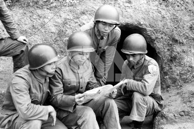 0075─0076圖為馬祖守備區指揮部士兵在坑道外看書。