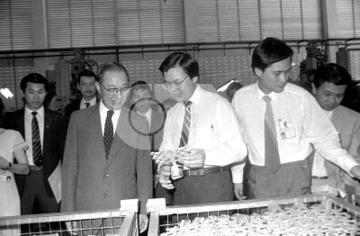 行政院長俞國華參觀高科技工廠(溫兄弟公司)。
