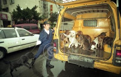 台北市政府環境保護局十九日上午出動捕犬車,到青年