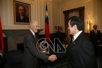 總統馬英九(右)10日在總統府接見「軟實力之父」美