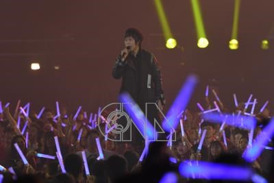 目,上萬粉絲入場觀賞。右起為主唱阿信、貝斯手瑪莎