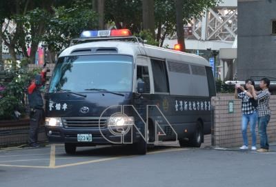 圖為新北檢警備車傍晚載著高志鵬等人,前往台北看守
