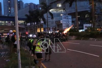 隨即施放多枚催淚彈驅離。示威者則撤退到大圍火車站