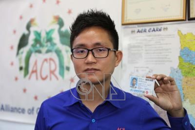 聯盟(ACR)協調員詹姆斯出示難民證。