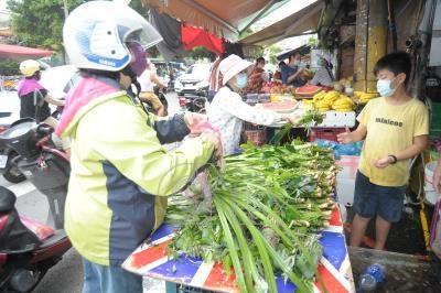 端午節即將來臨,桃園市力行市場攤商13日擺出艾草、