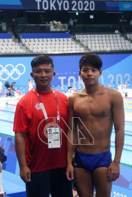 東京奧運開幕在即,中華隊游泳健將王星皓(右)22日