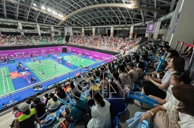 2023台北羽球公開賽22日持續在台北市立大學體育館(天母校區)進行16強賽事,適逢端午連假首日,吸引許多民眾進場觀賽。