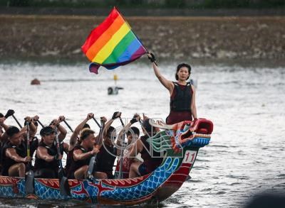 台北國際龍舟錦標賽 選手高舉彩虹旗