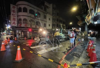 新北市鶯歌區文化路、建國路、中正一路一帶,24日受午後強降雨影響出現小區域積水,晚間雨停後消退。不過建國路與中正一路口路面受到雨勢影響發生破損情形,廠商已到場搶修,預計深夜完工。