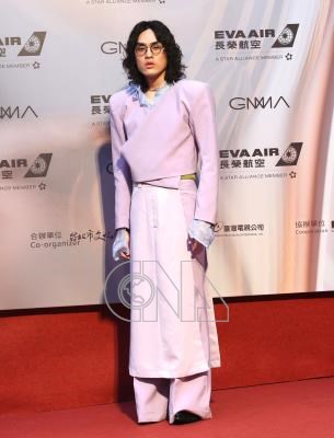 第34屆金曲獎星光大道1日傍晚在台北小巨蛋外熱鬧展開,現場星光熠熠,歌手鶴The Crane同時入圍本屆華語歌王及最佳新人獎,以有別於一般男星的淺色調造型服飾吸睛全場。