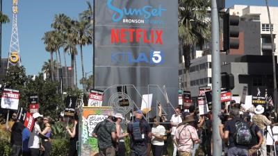 位在洛杉磯的串流平台Netflix總部14日遭到發起罷工的好萊塢演員和編劇工會成員包圍。參與者認為,串流平台付給高層數億薪水,基層演員卻快要活不下去。