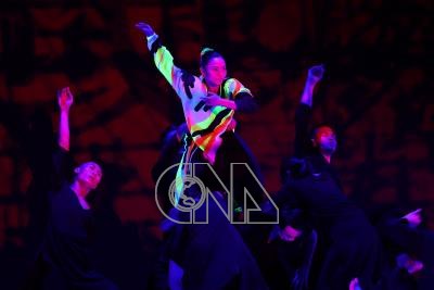 雲門舞集15日晚間在台北兩廳院藝文廣場舉行戶外公演,演出藝術總監鄭宗龍以台灣文化風景為靈感的經典作品「十三聲」。