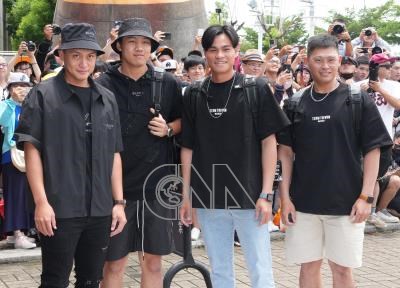 2023中華職棒明星賽29日首日賽事因雨延賽,不過賽前場外活動「選手上班路」等仍順利進行,入選今年中華隊的劉基鴻(前左起)、林子豪、宋晟睿與辛元旭帥氣進場。