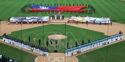 2023中華職棒明星賽30日在台中洲際棒球場開打,陸軍特戰指揮部官兵合力在場中展開20乘30公尺的巨幅國旗,為明星賽揭開序幕。