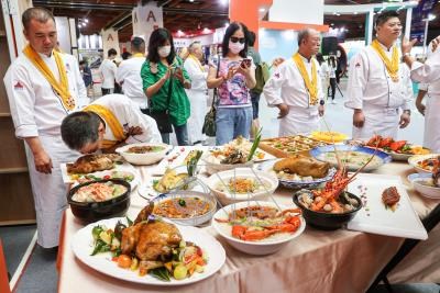 「2023台灣美食展」4日在台北世貿1館登場,交通部觀光局參展,邀請名廚到場宣傳台灣特色料理,推廣台灣美食文化。