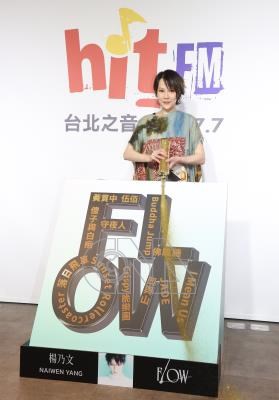 金曲歌后楊乃文個人第8張專輯Flow將於25日正式發行,17日她在台北出席記者會,主辦單位特別準備點「十」成金道具,讓楊乃文撒上金粉,預祝明年金曲順利鍍金。