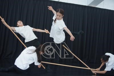 「翃舞製作」舞團將參加西班牙MASDANZA國際當代舞蹈節,22日於行前舉辦彩排記者會,舞者們現場排練編舞家郭爵愷的舞作「流」。