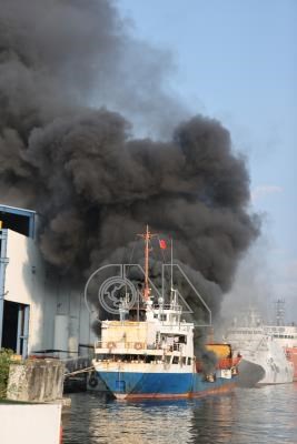 高雄市旗津區中信造船順榮廠13日下午發生火警,一艘停靠船舶冒出濃濃火煙,港務消防隊獲報出動9車24人前往灌救。