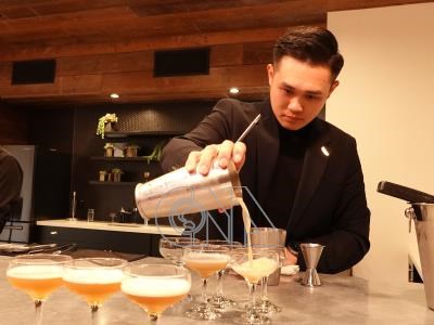 交通部觀光署在洛杉磯舉行觀光推廣會,調酒師黃文聖以多種台灣食材調製雞尾酒。