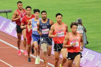 台灣好手卓家玄(左3)3日在杭州亞運田徑男子十項全能1500公尺出戰,最終加總成績無緣獎牌。