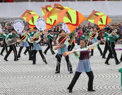 有「翡翠騎士」稱號的日本東京農業大學第二高等學校吹奏樂部,9日下午在台北國家兩廳院藝文廣場,與海軍官校鼓號樂隊、建國中學樂旗聯隊、美國UCLA棕熊行進樂隊交流演出,精彩表演吸引民眾目光。