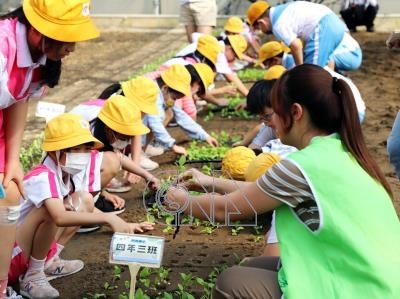 嘉義大學12日舉辦「食農教育推廣暨農事體驗活動」,由大學生帶領興嘉國小學童體驗播種、育苗、農具運用等農耕實務。