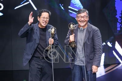 第58屆電視金鐘獎20日在台北舉行節目類頒獎典禮,生活風格節目主持人獎由「浩克慢遊」主持搭檔王浩一(右)、劉克襄(左)拿下。