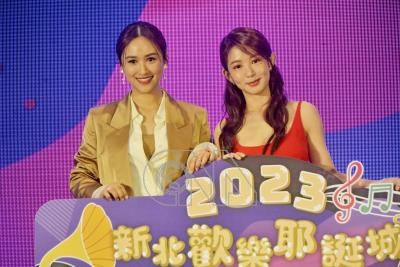 2023新北歡樂耶誕城巨星演唱會18組演出卡司24日揭曉,將首度登上耶誕城舞台的歌手郭書瑤(右)與演唱會主持人吳姍儒(左)一同出席記者會。