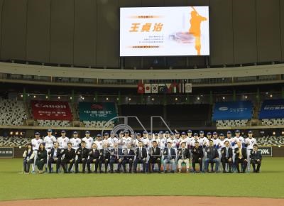 王貞治為大巨蛋開球 與亞錦賽台灣隊場中合影