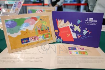 「世界人權宣言」頒布75週年前夕,中華郵政特別發行人權郵票1套4枚,以人權宣言及各公約的英文簡稱,結合獨特色彩及符號為設計,傳達尊嚴、自由與平等基本概念,發行典禮8日在台北北門郵局登場。