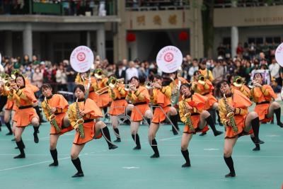「橘色惡魔」日本京都橘高校吹奏樂部12日受邀出席台北市立第一女子高中創校120週年校慶大會,現場演奏8首經典曲目,搭配活潑的肢體動作炒熱現場氣氛。