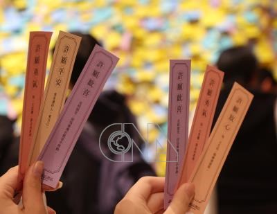 台北信義誠品將在24日平安夜熄燈,民眾在「信義18年回顧展」便利貼牆寫下祝福,並帶走籤詩留念。