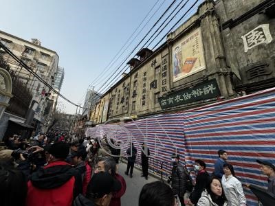 「醬園弄」改編自發生在1944年上海的真實案件,從正在搭建的場景可以看見劇組試圖重現當時上海風貌的街景與招牌。