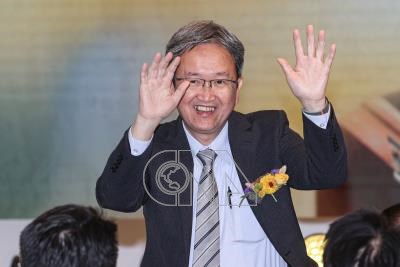 台灣電力公司24日舉行台灣電力文物典藏中心開幕記者會,台電總經理王耀庭(圖)出席,向眾人揮手致意。