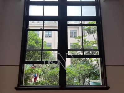行政院中央大樓迴廊至今仍妥善保存檜木製作的平衡錘拉窗,窗框裡裝秤錘,秤錘重量等於上下兩片玻璃窗的重量,能讓窗面拉動時可以隨意停住,不會下滑,展現巧妙設計。
