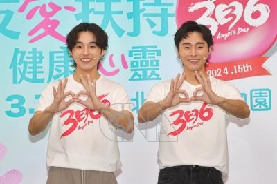 天使心家族基金會將舉辦2024第15屆336愛奇兒家庭日活動,YouTube頻道「這群人TGOP」成員展榮(右)與展瑞(左)29日在台北出席記者會,一同站台宣傳。