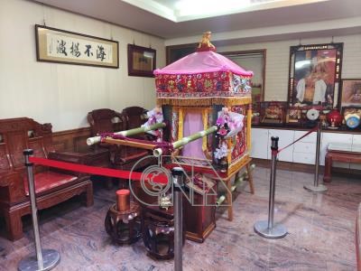 2024白沙屯媽祖徒步往雲林北港朝天宮進香活動,預計18日凌晨0時35分登轎後出發,有「粉紅超跑」之稱的媽祖鑾轎17日下午暫置在白沙屯拱天宮廟內辦公室,蓄勢待發。
