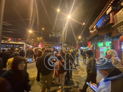 北京東城區交道口南大街19日晚間7時40分發生一起黑色汽車撞非機動車道的突發事件。案發地點在晚間9時30分仍有許多民眾在現場徘徊。